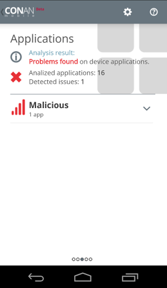 Aplicaciones se comporta más como un antivirus para smartphones. Te avisará si alguna de las apps que tienes instaladas son maliciosas o sospechosas, con la ayuda de la tecnología de VirusTotal.