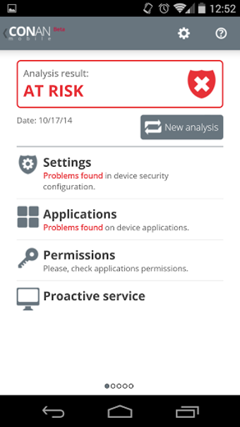 CONAN Mobile hace las comprobaciones por ti. Analiza la configuración del teléfono y te pone sobre aviso de posibles vulnerabilidades.